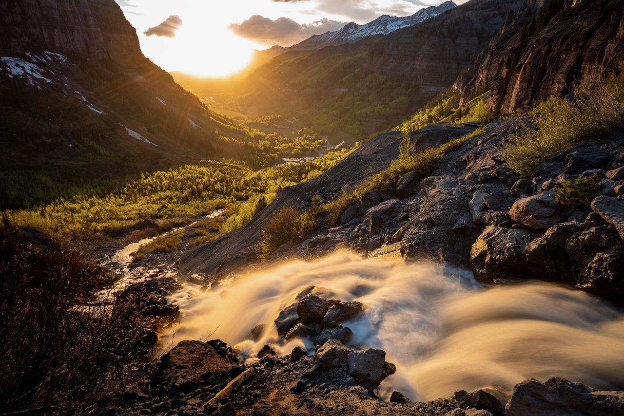 Ingram Creek roars down towards Telluride, Colorado. The stunning box canyon was once famous for its mining. It now serves a backdrop to many outdoor adventures.